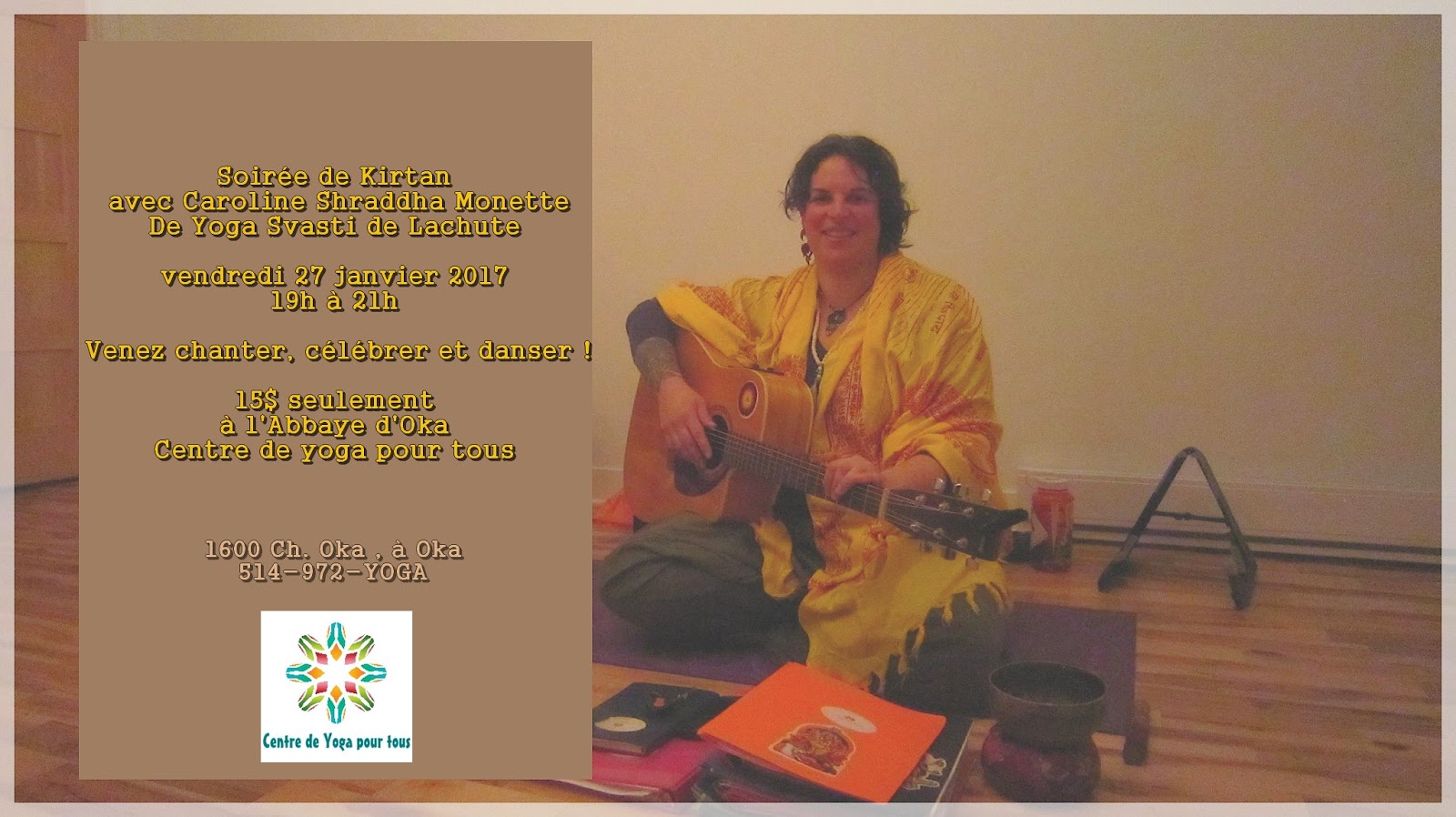 notre premier Kirtan le vendredi suivant, le 27 janvier avec notre invitée Caroline Shraddha Monette de Lachute !